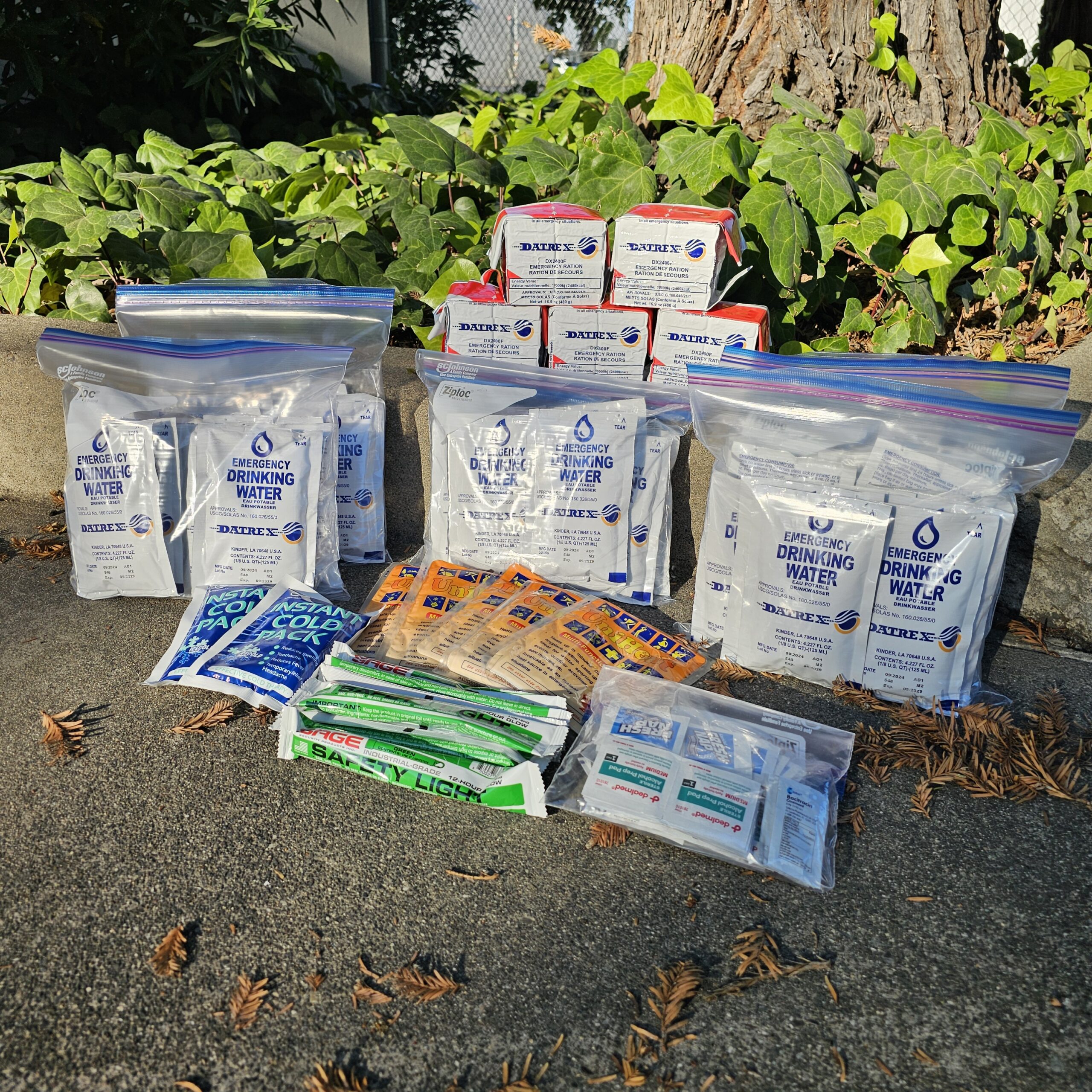 - emergency food (2400 calorie foodbar – 12 servings per person)
